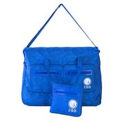 Convenient travel bag made of durable nylon material can fold into a 7 x 7 x 1 inch pouch. Bag expands to 19 x 14 x 7 inches with 2 exterior pockets and includes an optional shoulder strap.